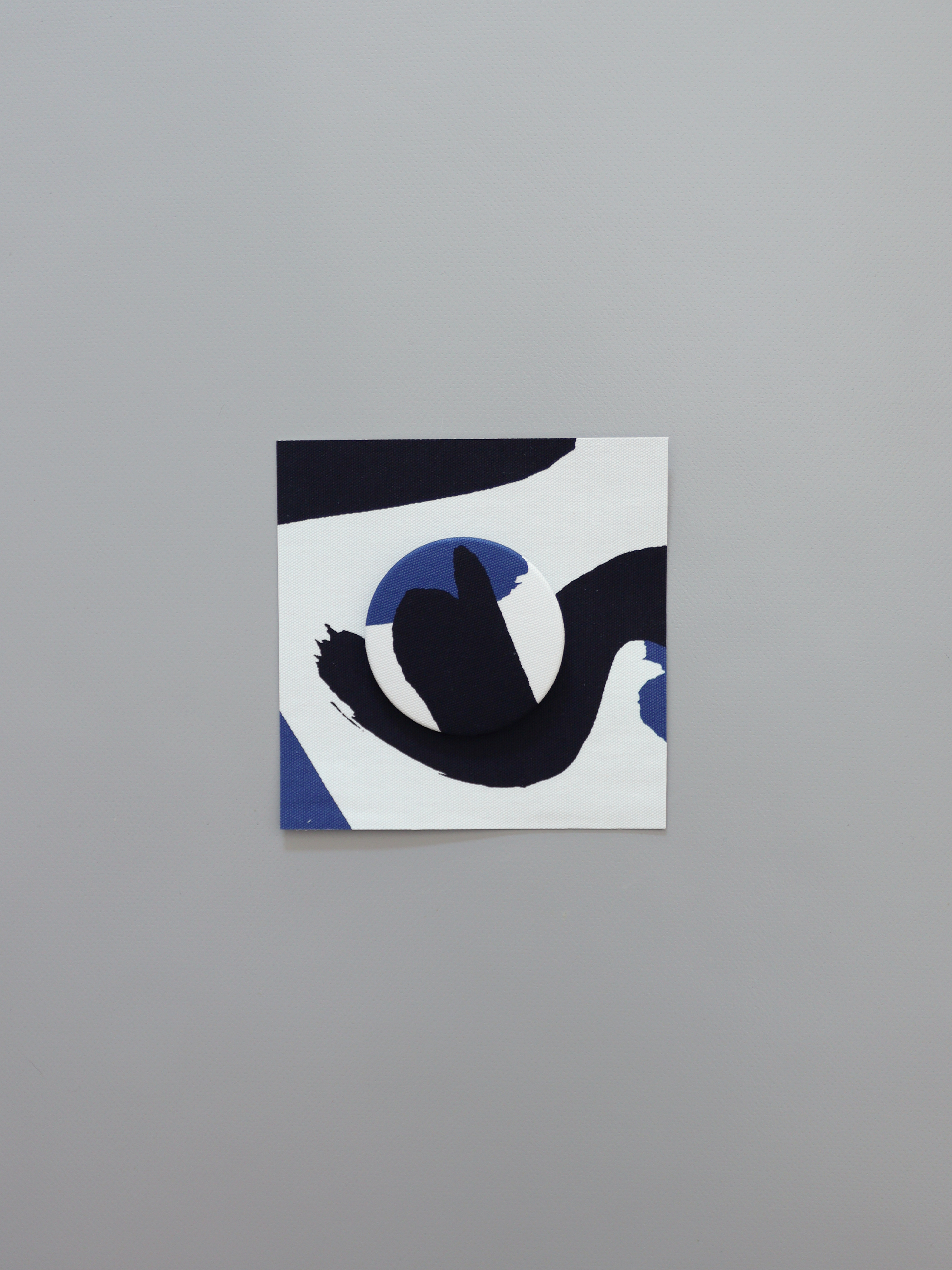 ASENDADAのテキスタイルを張り込んだ直径95mmのビッグサイズバッジ。