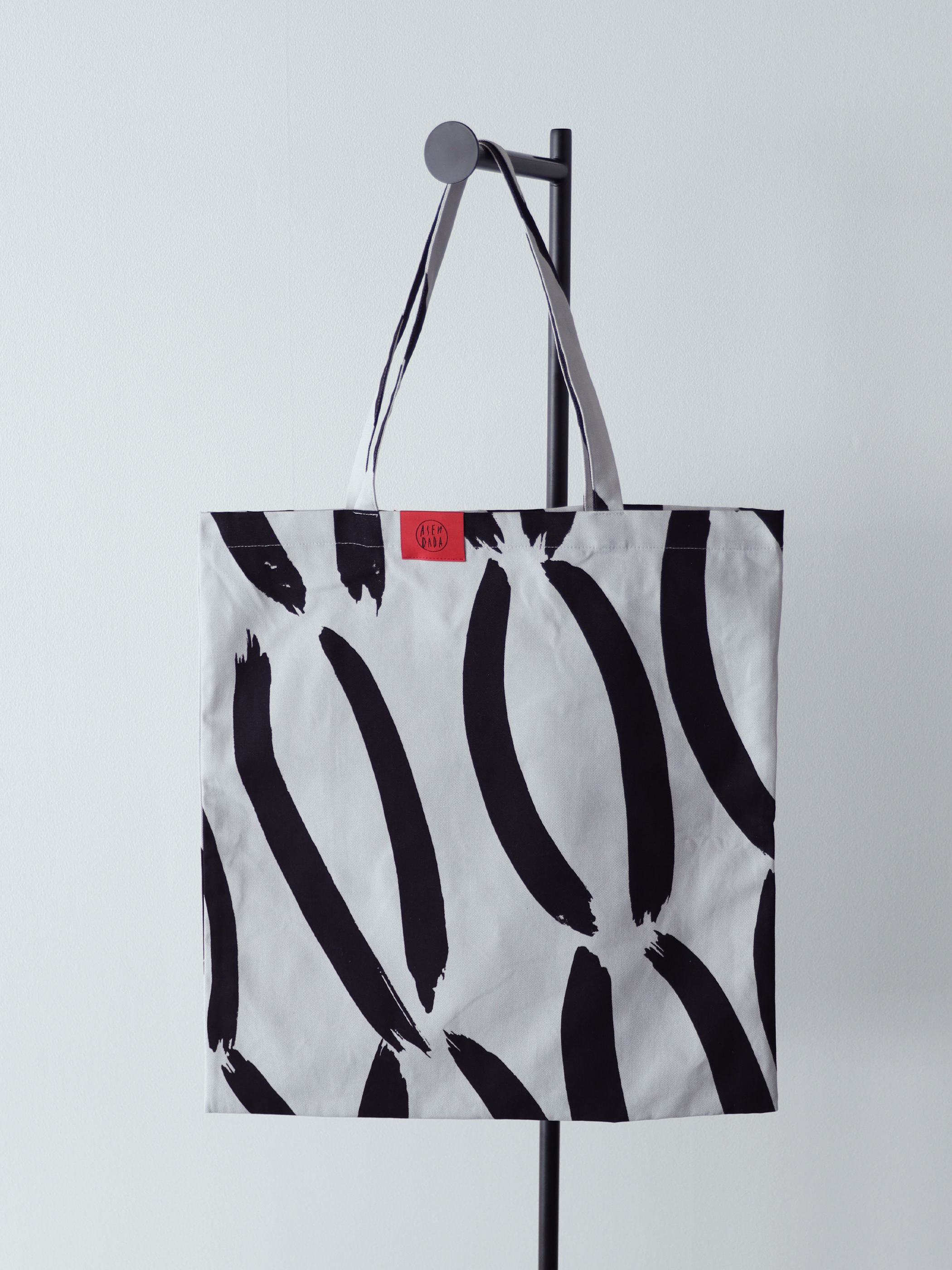 ASENDADAオリジナル生地のトートバッグ。内側にはポケットが縫い付けられていますので取り出しづらい小物を入れることができます。持ち手が程よい長さなので、肩にかけることもできます。