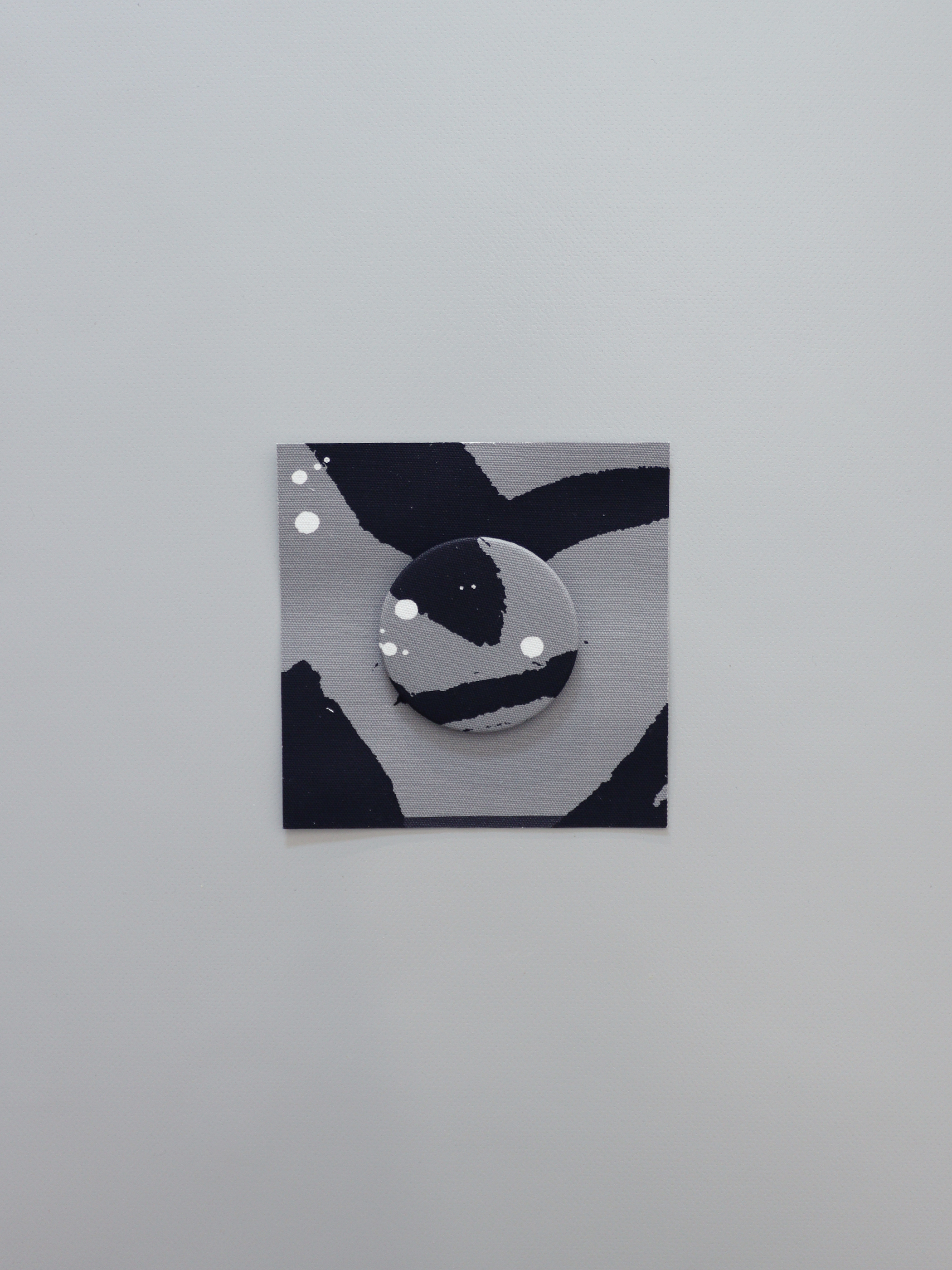 ASENDADAのテキスタイルを張り込んだ直径95mmのビッグサイズバッジ。