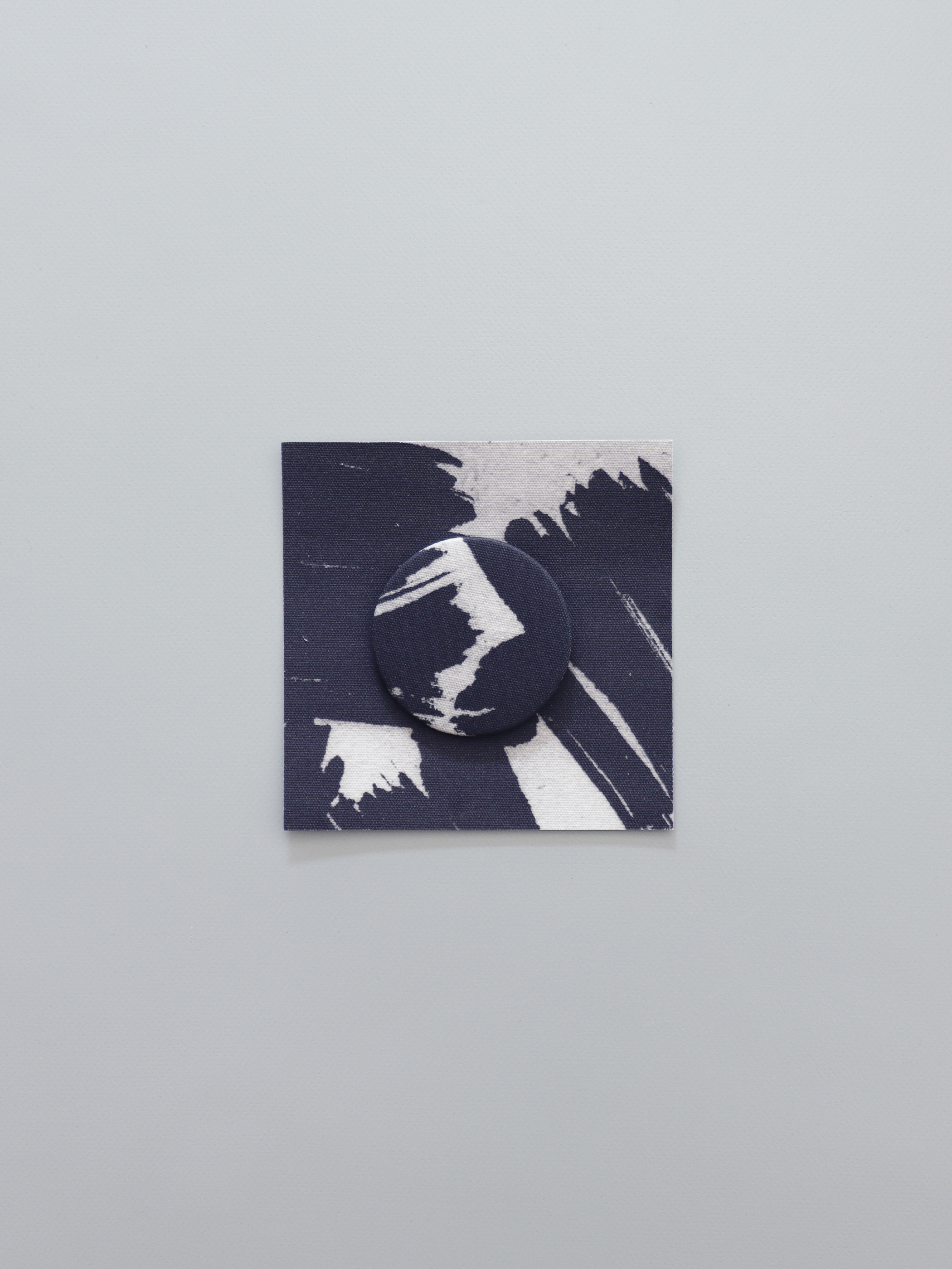 ASENDADAのテキスタイルを張り込んだ直径95mmのビッグサイズバッジ。